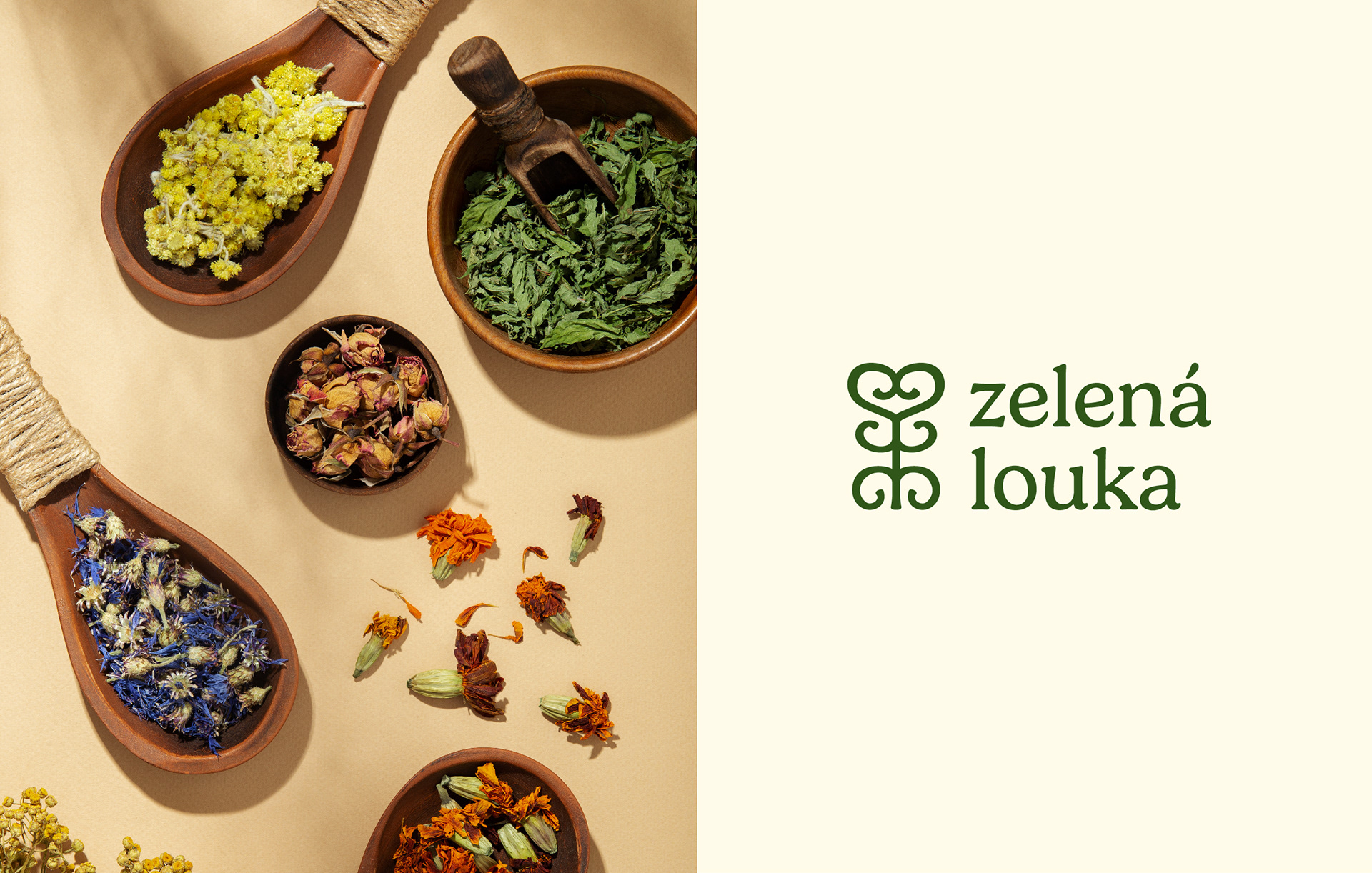 Pro Zelenou louku vzniklo logo, které evokuje nádech tajemství ve smyslu odkazu na dávné tradice. Hlavním motivem je silueta klíče, která má za cíl symbolizovat přístup k novým znalostem a porozumění bylinkářskému umění. V horní části klíče je zakomponováno srdce, vyjadřující lásku k řemeslu. Celek loga doplňují tahy rozkvétající rostliny, které zdůrazňují spojení s přírodou a růst.